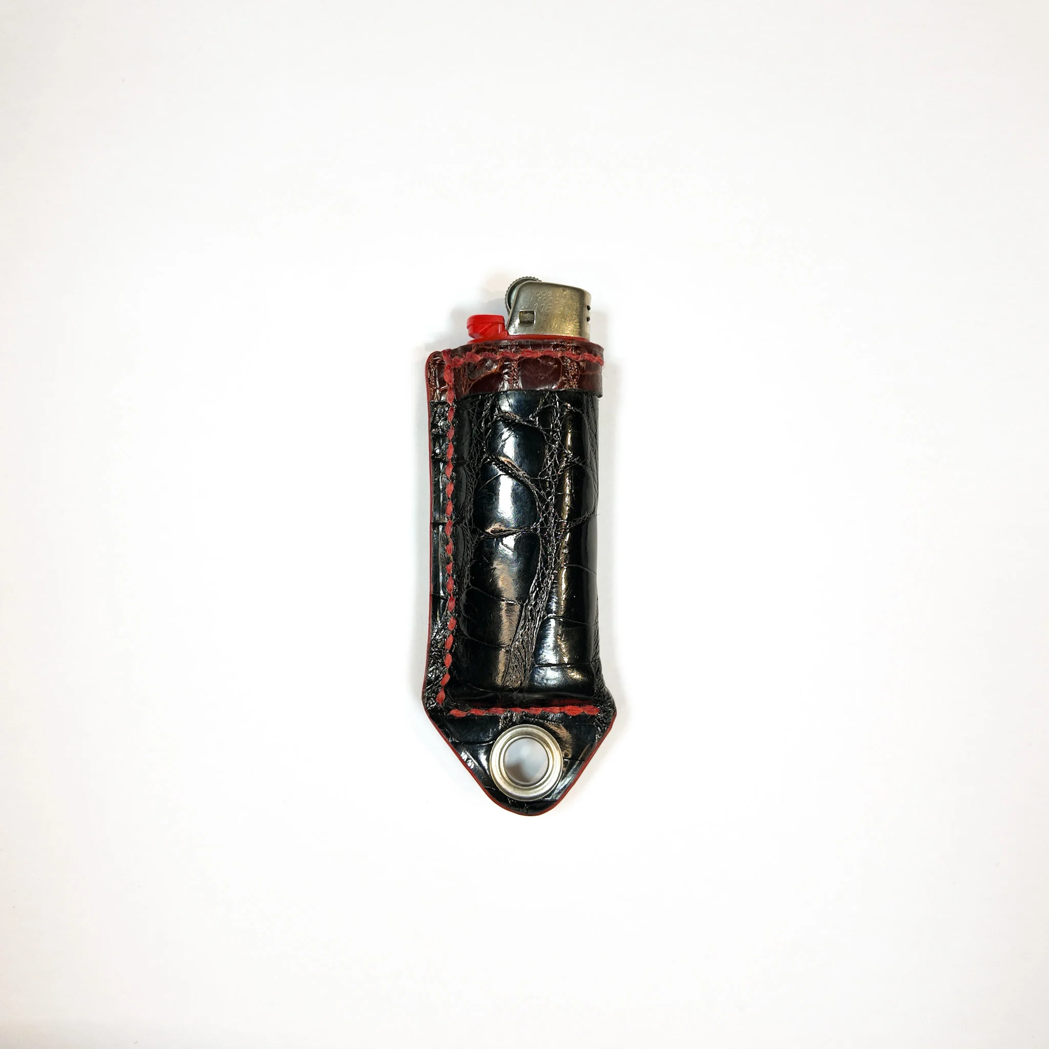 Étui à briquet en cuir d’alligator avec œillet noir