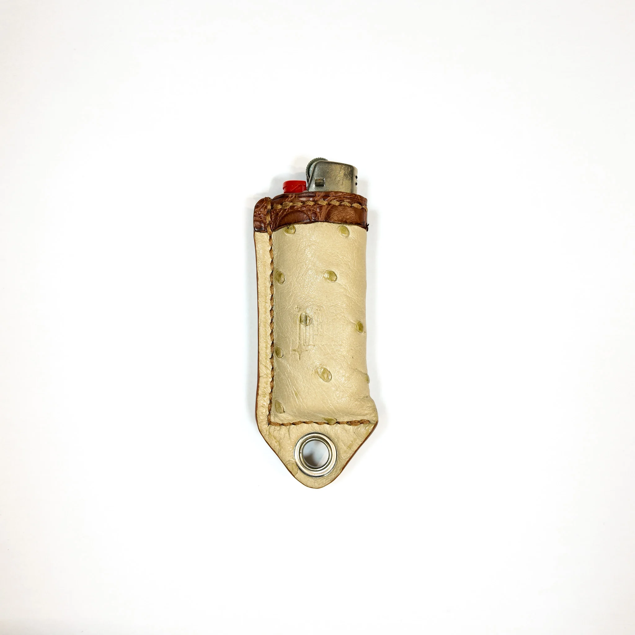 Pratique et élégant, cet étui en cuir d’autruche revalorisé est entièrement fabriqué à la main. Il est doté d’un petit œillet qui permet de l’accrocher où vous le souhaitez. Doublure en agneau ou veau pour protéger le briquet et finition artisanale pour un ajustement parfait.